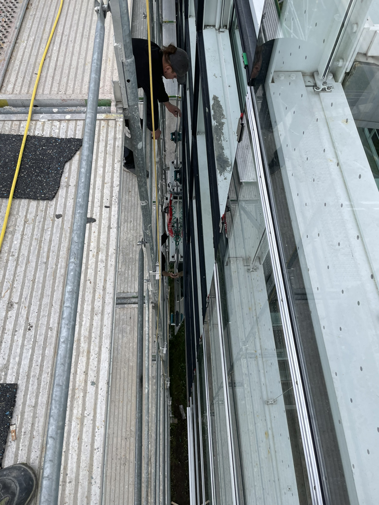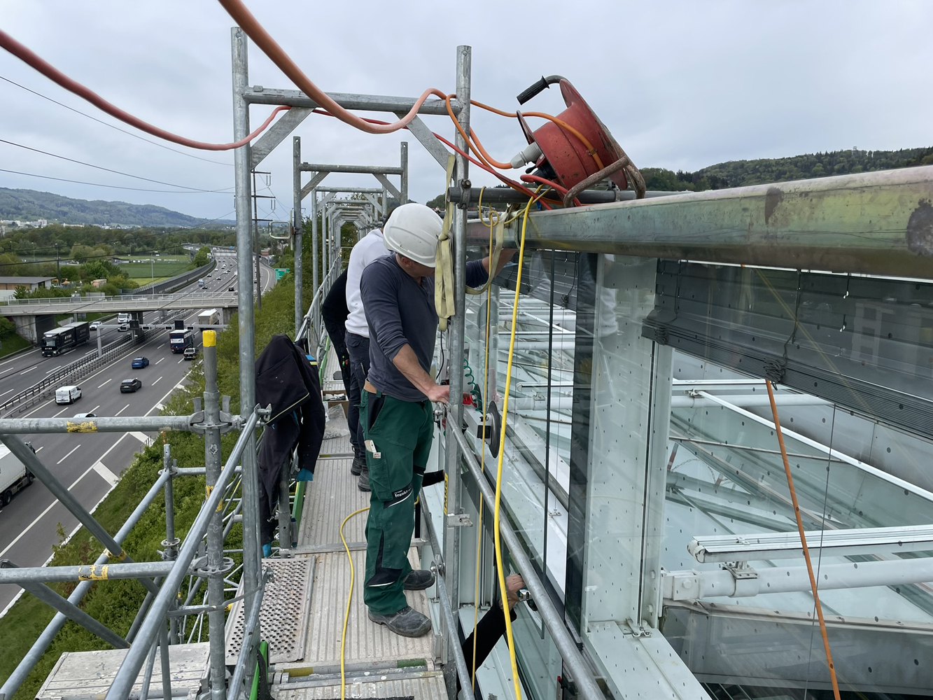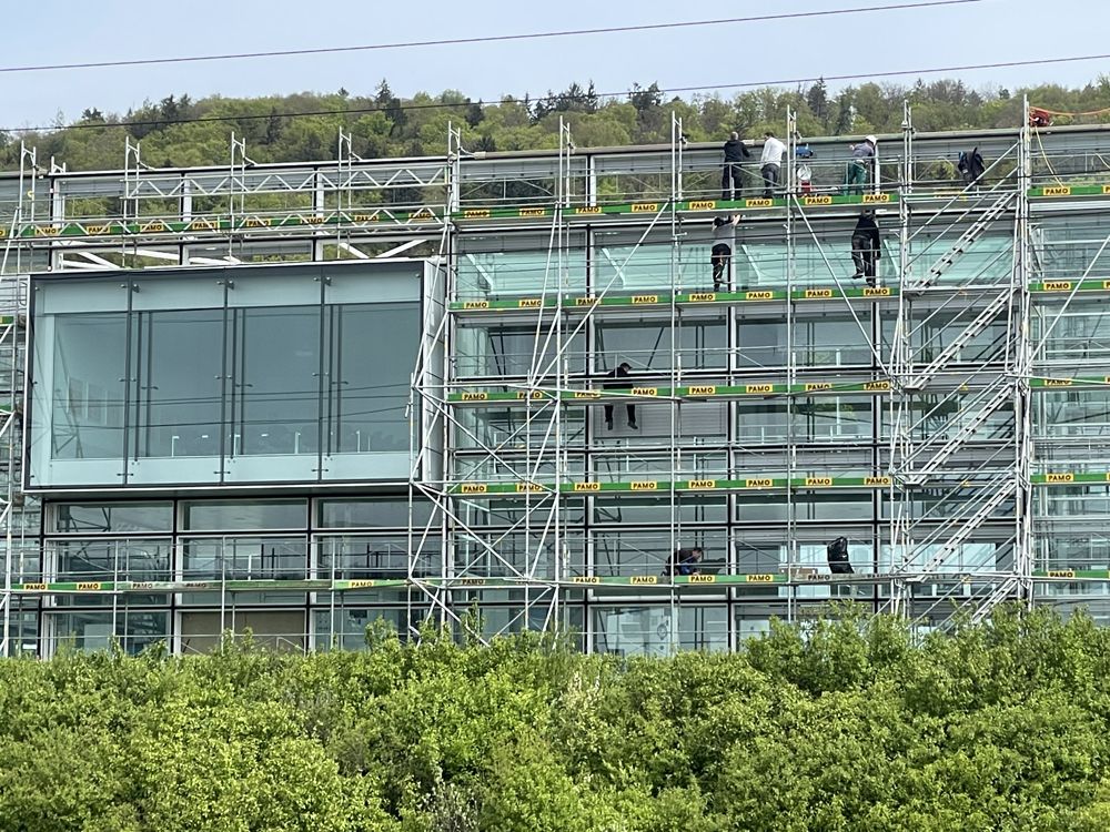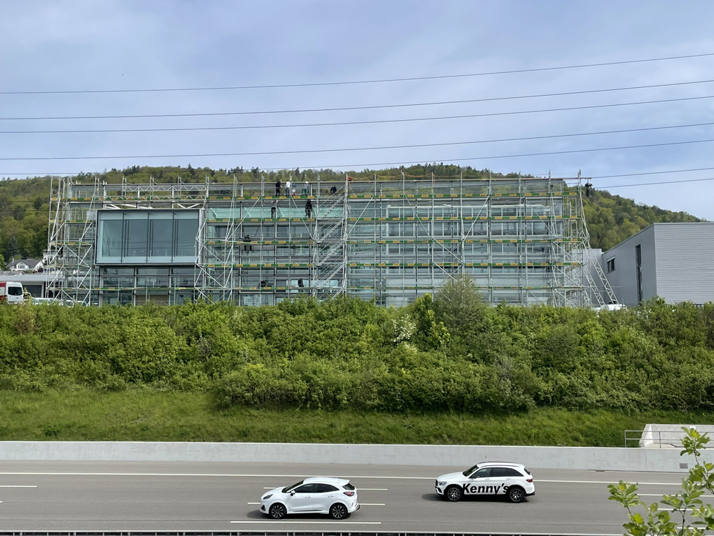 Die 1998 erstellte Fassade des Administrations- und Training-Centers der Firma Weisshaupt AG in Geroldswil musste saniert werden. Die Firma Surber Metallbau AG konnte als Generalunternehmer die Sanierung der Gebäudefassade sowie der Vorfassade ausführen. Dies beinhaltete die Demontage der bestehenden Konstruktion, Reinigung und Teilersatz der Verglasung, Herstellung einer neuen Aufsatzkonstruktion als Aluminium Pfosten-Riegel-Fassade, Einsatz der Gläser, neues Beschattungssystem sowie den Komplettersatz der beweglichen Elemente (Fenster, RWA und Türen).